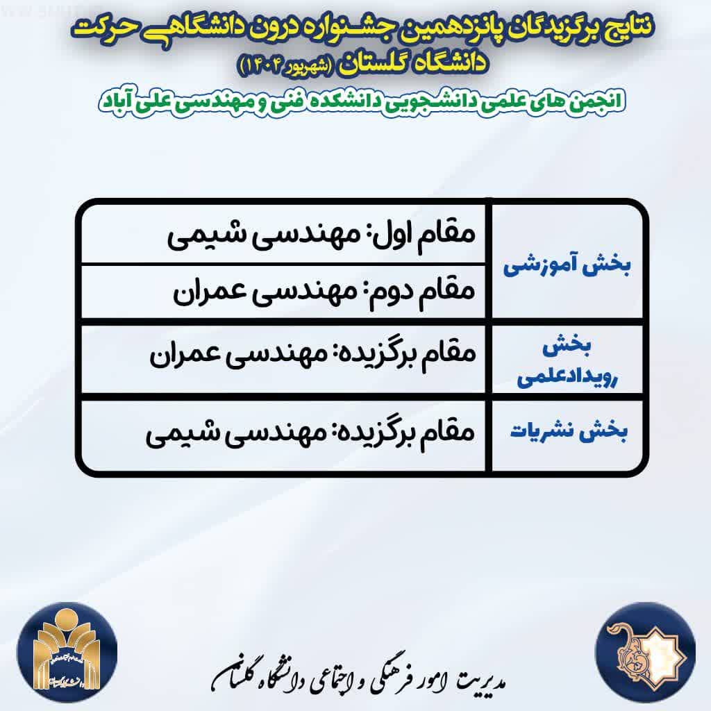 اعلام برگزیدگان پانزدهمین جشنواره دروندانشگاهی حرکت دانشگاه گلستان(ویژه انجمن های علمی)