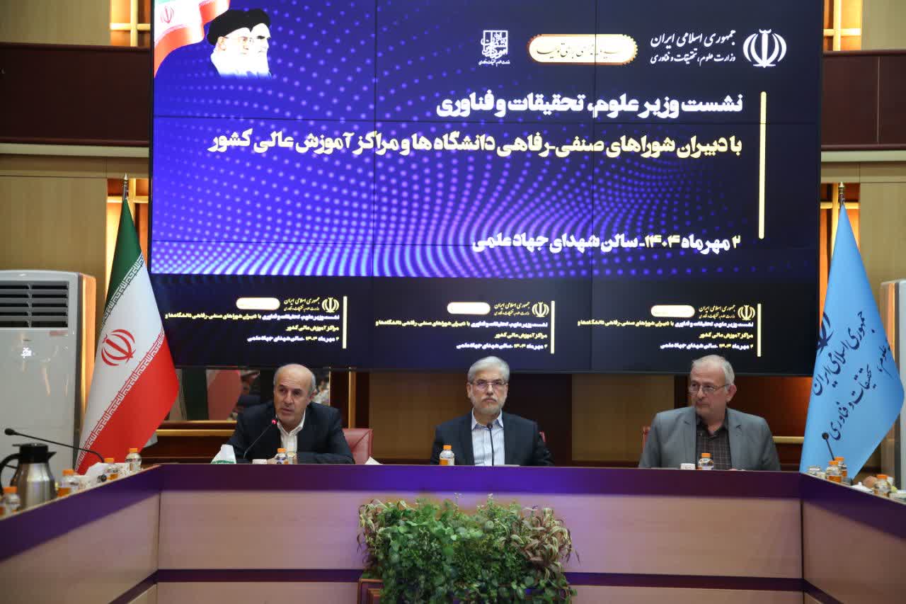 نشست صمیمی دکتر سیمایی وزیر علوم، تحقیقات و فناوری و دکتر حبیبا معاون وزیر علوم و رئیس سازمان امور دانشجویان با دبیران شوراهای صنفی–رفاهی دانشگاهها و مراکز آموزش عالی کشور برگزار شد.